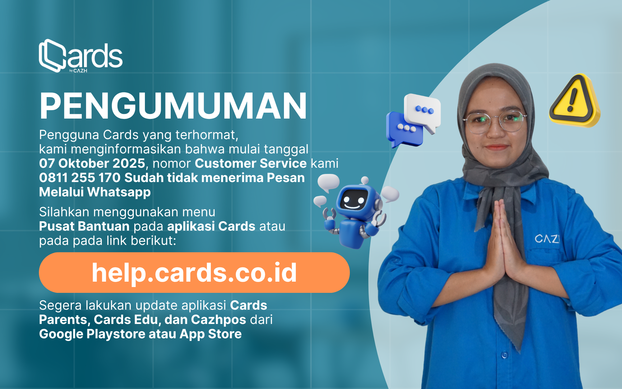 Segera lakukan update aplikasi Cards Parents, Cards Edu, dan Cazhpos dari Google Playstore atau Appstore